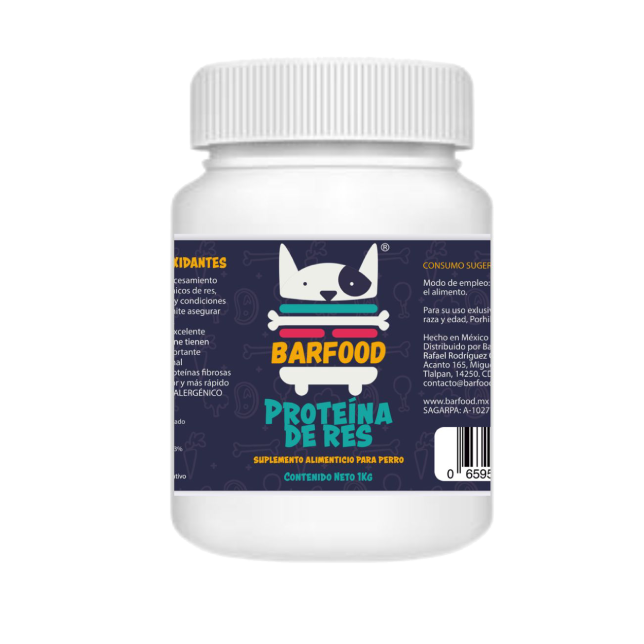 Proteína de Res con antioxidantes. La proteína de carne es el resultado del procesamiento de una mezcla adecuada de productos cárnicos de res, su color amarillo ocre, aroma característico y condiciones sanitarias en las que es procesada nos permite asegurar una excelente calidad en nuestro producto. Por su contenido proteico (55-58%) y una excelente digestibilidad (91- 93%) las proteínas de carne tienen la funcionalidad de ayudar de manera importante en el incremento del rendimiento nutricional (peso muscular) del animal debido a sus proteínas fibrosas que ayudan a que el animal desarrolle mejor y más rápido su masa muscular, ES UN PRODUCTO HIPOALERGENICO 100% NATURAL No contiene sal.